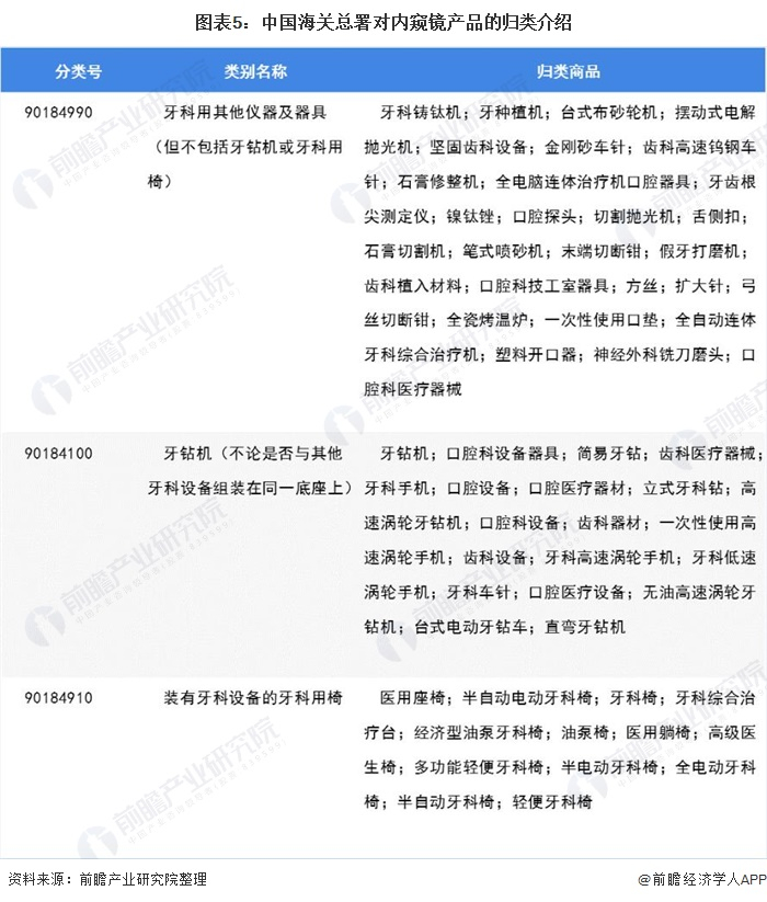 目前我国进出口的内窥镜产品主要包括牙科用其他仪器及器具(税则号90184990)、牙钻机(税则号90184100)、装有牙科设备的牙科用椅(税则号90184910)三大类。