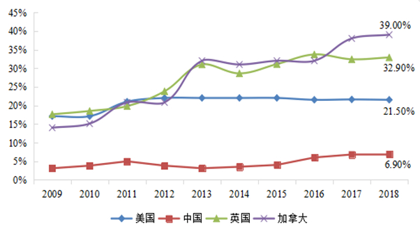 在欧美国家,共享(租赁)已经是非常成熟的行业。我国成规模的租赁业务起步较晚,租赁渗透率水平总体上低于欧美发达国家平均水平。尽管从2013年到2018年,中国融资租赁市场规模从2.1万亿元增加到6.65万亿元,但是市场渗透率仅为6.9%,离欧美发达国家20%~40%的渗透率还有较大差距。