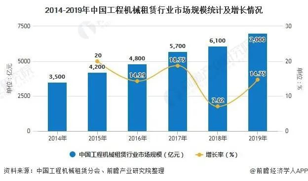 作为基建狂魔,中国的工程机械租赁市场是非常庞大的。据不完全统计,中国工程机械市场规模从2010年1,500亿增长到2019年7,000亿,复合增长率达18.7%,是全球最大的工程机械租赁市场。