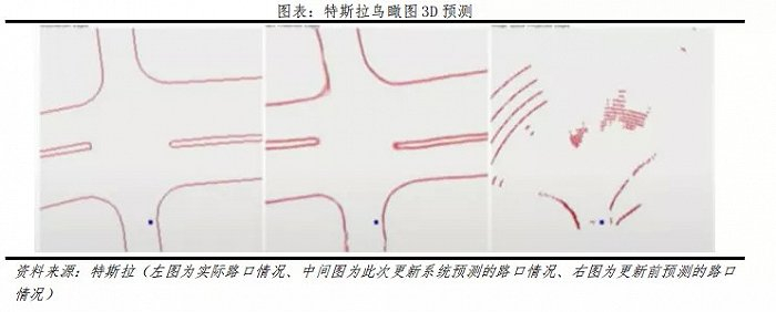 从最终的结果来看,特斯拉引入了3D鸟瞰预测图,将摄像头一直被饱受诟病的只能拍摄“二维画面”实现了3D化的呈现。