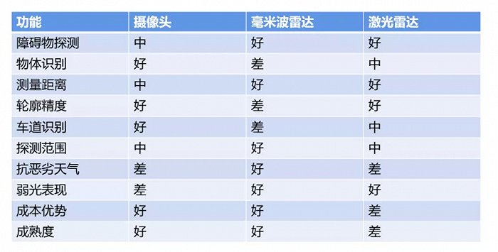 二、以Waymo、大部分车企为代表的激光雷达主导的流派,在摄像头、毫米波雷达的基础上增加了激光雷达,可以进行远距离、全方位的探测,分辨率较强,但硬件成本较高,且激光雷达同样也存在一些问题:比如,在恶劣天气的条件下表现一般,缺乏对环境的颜色和纹理信息的辨别,并且在大范围安装激光雷达后,激光雷达有无法判断是否为自己发出的脉冲光的串扰风险,这会直接导致激光雷达判断不出物体的形状。