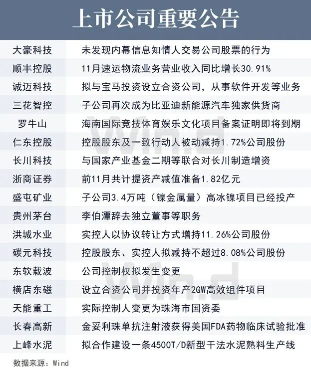 7、证监会:财达证券、鑫铂股份、浙江新能3家公司首发12月24日上会。