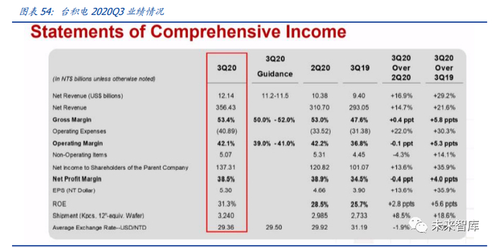 7nm 营收占比高达 35%,5nm 显著放量至 8%。20Q3 公司 7nm 营收比例最高,达 35%;16nm 营收占比 18%,28nm 营收占比 12%,5nm 营收显著放量,比例增至 8%。
