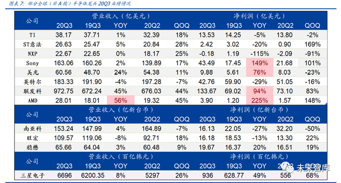 我们选取目前已公布 Q3 季度业绩的具有代表性的全球(非 A 股)半导体领域公司进行 分析,伴随着三季度疫情企稳、下游需求环比改善,美光(存储龙头)、AMD(设计龙头)、 联发科等 Q3 业绩高速增长同时,普遍给出未来行业景气的乐观指引。电子最核心逻辑 在于创新周期带来的量价齐升,本轮创新,射频、光学、存储等件在 5G+AIoT 时代的增 量有望与下游需求回补共振,2021 年有望迎行业拐点。