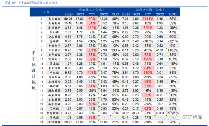 其中 20Q3 24 家 IC 设计公司中 20 家营收同比增速为正,10 家公司营收同比增速超过 50%,3 家公司营收同比增速超过 100%;