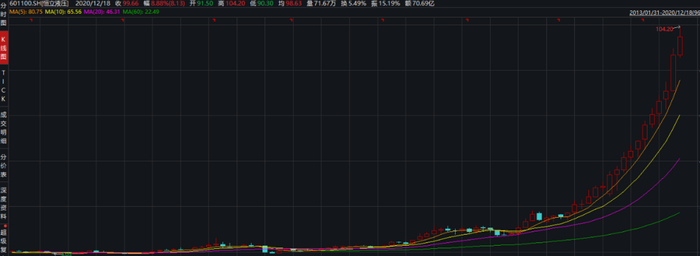 但银河证券显然是低估了市场热情,在之后几个月,白酒板块继续飙升。11月12日中金公司发布《小酒热下的冷思考》研报,之后白酒行情短暂沉寂。12月又卷土重来,不仅贵州茅台刷新了历史新高,还出现了皇台酒业复牌首日大涨314.99%的盛况。