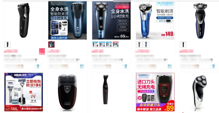 打开某猫输入“剃须刀”三个字,一眼看去旋转式电动剃须刀占据了大多数。