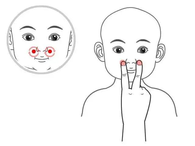 迎香穴,被古人称为“鼻通穴”。如果孩子鼻塞的情况不是很严重,家长也不愿轻易使用药物,那可以选择按揉迎香穴帮助孩子通鼻。该穴位于鼻翼外缘中点旁,当鼻唇沟中,家长可用指端点揉,每次5分钟,力度以微感酸胀为宜。