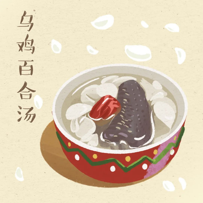 营养:乌鸡性温,能滋阴补肾、养血益肝;百合性凉,能养阴润肺,清心安神;红枣性温,能补中益气,宁心安神。如此搭配寒热适中,温补又不会太辛热,尤其适合冬天给脾胃虚寒的孩子喝。
