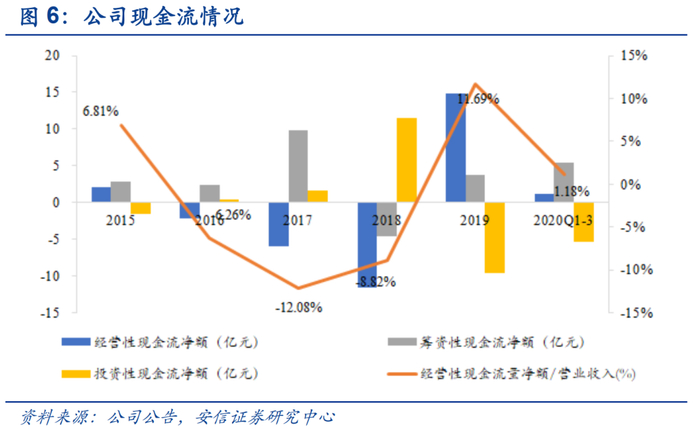 2020年前三季度以及2019年底经营性现金流均转正,为公司后期的产业聚焦战与深化智能环卫体系提供强有力的支持。