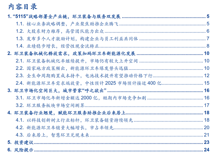 1.“5115”战略部署全产业链,环卫装备与服务双发展