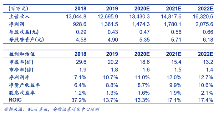 投资建议:预计公司2020-2022年EPS为0.47、0.56、0.66元,对应PE为18.6X、15.4X、13.2X;给予买入-A的投资评级,6个月目标价为10.42元。