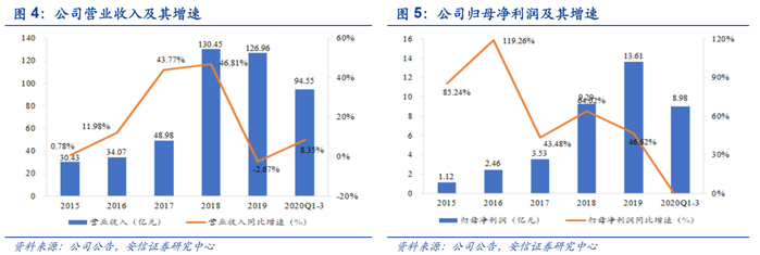 环卫装备行业翘楚,赋能环卫服务助推企业后来居上。公司对智慧环卫装备的研发投入和技术创新能力在行业领先。经过多年来的发展,公司下设有 64 家分公司、逾 300 个运营中心,产品型号超过400余款,建立了全国最完善的环卫和环境产业链。公司率先形成融合“智能装备、智云平台、智慧服务”的智慧环卫体系,互联网、物联网联合推动环卫高效精准化。同时,公司新能源环卫车占比大幅提升,根据公司公告和公众号,2019年该板块营收同比增长130.7%,市占率位居行业第三,今年前三季度销量和营收已跃居行业第一。