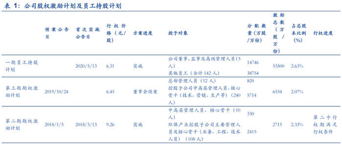 一期员工持股计划正式完成购买,调动员工积极性共创未来。2020年5月13日,公司一期员工持股计划完成股票购买,成交均价为6.31元/股,持股计划募集规模为2.28亿元,占公司现有总股本的1.14%。此外,自2016年以来,公司一共推出了三期股票期权激励计划计划,激励对象主要是中高层管理人员、核心骨干和子公司管理层及核心骨干。2016年第一期激励计划中,公司共授予544万股,授予价格为18.77元/股,占公司股本总额的1.12%。2018年第二期激励计划中,公司授予2715万股,授予价格为9.26元/股,占公司股本总额的2.33%。2019年第三期激励计划中,公司授予6534万股,授予价格为6.45元/股,占公司股本总额的2.07%,行权条件为2019-2021年公司实现扣非归母净利润不低于14、16.8和20亿元,合计50.8亿元。截至目前,公司首批激励对象的限制性股票第三个锁定期已届满,第二批激励对象的第二个行权期也已满足行权条件,第三批激励对象的第一个行权期尚未达到行权条件。公司多次推出员工激励计划和持股计划,两大人才激励计划覆盖董事以及大部分中高层员工与核心骨干,充分调动员工的积极性,有利于公司和员工目标一致和收益共享,推动企业保持核心竞争能力优势。