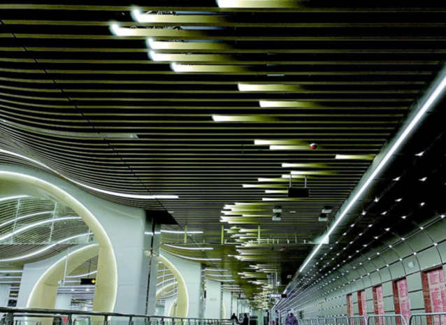 走进长风街站,一定会让你眼前一亮,暖灰的色彩基调搭配灵动的灯光效果,传递出一种唯美感及时尚感。大厅顶部利用灯光,营造出山水画的效果,好似梦幻的流星雨。侧墙采用灰色的金属板,板间点缀 LED 光源,形成阵列,展示出动态的光影效果。乘客在车站的不同位置,能获得不同的视觉感受,可谓步移景异。