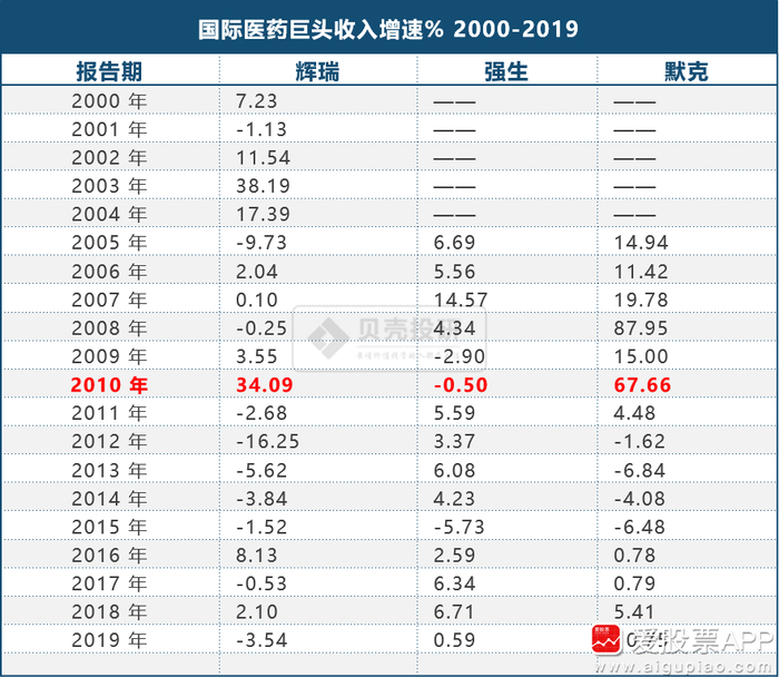 2000年后特别是2010年后,辉瑞、强生以及默克这些大型药企的收入都出现了不同程度的负增长。
