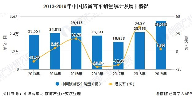 2013年以来,我国旅游客车销售呈现震荡,2013-2017年,全国客车呈现先升后降趋势,2018-2019年,我国旅游客车销量整体有所回升。