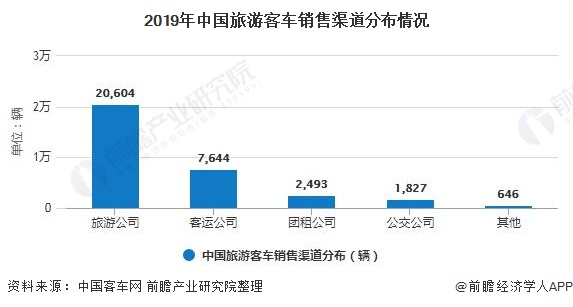 具体到旅游客车销售渠道来看,目前,我国旅游客车需求市场相对集中,主要包括旅游公司以及客运公司。2019年,我国旅游客车销售市场中,销往旅游公司的旅游客车数量为20604辆,占总销量的61.99%,其次是销往客运公司的旅游客车,销量为7644辆,占总销售的23.0%。