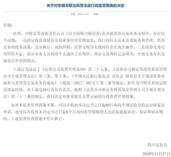 此前行家曾在《公开招聘券商总经理,围观ing》一文中点评过的川财证券,近期摊上了事:四川证监局连发三份监管函,直指其债券交易业务存在多项违规行为。