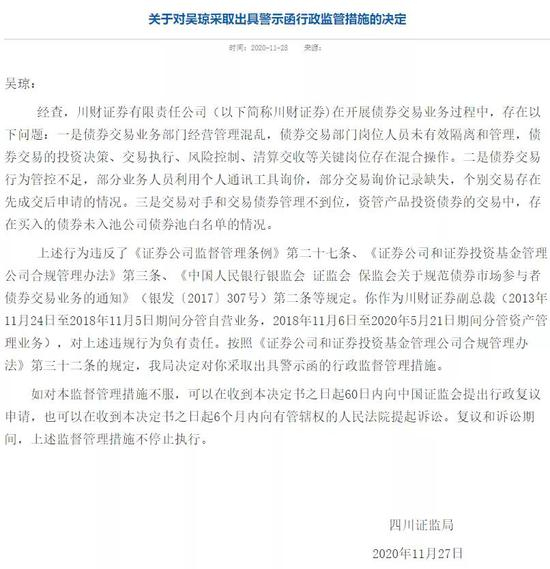 而川财证券副总裁吴琼,除这两条外,还有第三条违规行为——