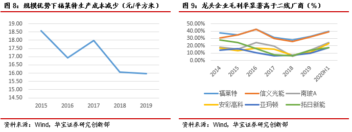 光伏玻璃作为重资产行业,在大窑炉的规模效应下头部企业成本和毛利优势明显。我们判断2021年H2开始随着新增产能的投放,供需格局将回归理性,光伏玻璃作为重资产行业,龙头企业的规模优势除了财务成本和资产的折旧减值外,大窑炉对光伏玻璃生产线的良品率和单位生产成本都有极大的提升,目前除了行业内首建1000吨产线的信义玻璃外,福莱特和旗滨集团都将于2021年投放1200吨产能的大窑炉,龙头企业凭借资金优势将垄断大窑炉产能,这也为其降本提供了技术个规模支持,持续降本下龙头企业也有足够大的毛利空间应对后续光伏玻璃价格回归理性后的缺口,因此受到的影响较小。从长期看,当供需缺口随着产能释放后逐渐消除,建议关注规模优势明显的龙头光伏玻璃厂商。