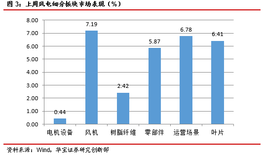 风电方面,树脂纤维板块平均上涨2.42%,叶片板块平均上涨6.41%,零部件板块平均上涨5.87%,电机设备板块平均上涨0.44%,场景运营板块平均上涨6.78%,风机板块平均上涨7.19%。