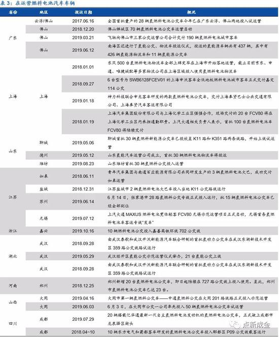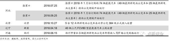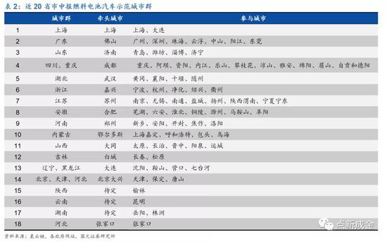 全国以富氢优势、弃电较多或者产业领先为代表的地区重视燃料电池发展,多地市兴建氢能产业园区,氢能小镇和产业集群等,推动燃料电池公交、物流车示范运营,目前已有18城市群申报氢能示范城市。