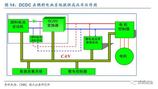 燃料电池系统DC/DC除了实现功率变换功能以外,具备以下特殊性:1)实现整车能量分配控制,优化整车动力性和经济性;2)弥补燃料电池电气特性,实现宽范围电压输入和稳定输出;3)快速提升燃料电池温升,实现低温快速启动;4)在线诊断燃料电池状态,延长电堆寿命。