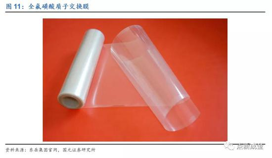 在国内,山东东岳集团质子交换膜性能出色,具备规模化生产能力。2004年,东岳集团联合上海交通大学研发出质子交换膜,经日本丰田公司和德国Fuma.Tch公司分别检测,东岳公司生产的质子交换膜性能出色不逊于同类产品。目前,东岳DF260膜厚度做到15um,在OCV情况下耐久性大于600小时;膜运行时间达到6000小时;在干湿循环和机械稳定性方面,循环次数都超过2万次。东岳DF260膜技术已经成熟并已定型量产,11月18日,东岳质子交换膜150万平米质子交换膜生产线一期工程投产。