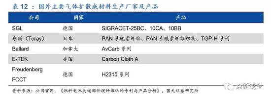 目前碳纸产品主要由几个国际大生产商垄断,包括日本东丽(Toray)和德国SGL等。东丽目前占据较大的市场份额,且拥有的碳纸相关专利较多,生产的炭纸具有高导电性、高强度、高气体通过率、表面平滑等优点。国内产品尚处于小规模生产。上海河森公司和上海济平公司有小批量碳纸产品,台湾碳能科技公司的碳纸产品价格较低,获得了一定市场认可。