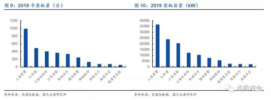 据交强险数据口径,2019年国内燃料电池汽车上牌数目合计3190台。分车型看,燃料电池运输车共计搭载1244台,占比39%,配套系统装机总量39.6MW,单车配套系统功率均值31.8kW;燃料电池客车搭载1176台,占比37%,配套系统总装机49.2MW,单车系统均值41.8kW;此外保温车、冷藏车等专用车型共计搭载燃料电池系统770台,装机量合计37.6MW。