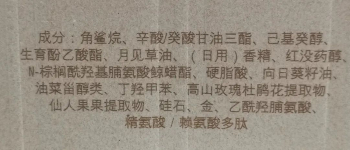 另外还添加了多种活性成分,其中比较显眼的是精氨酸/赖氨酸多肽,这种成分可以促进胶原蛋白生成,具有较好的防老、抗皱效果,且与皮肤的相容性佳,不易过敏。