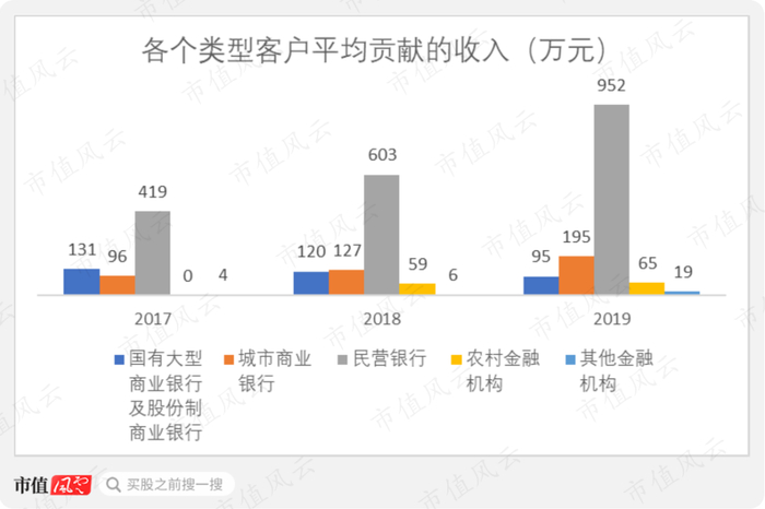 其他类别中,国有大行和股份制商业银行数量增长稳健,但是平均每个客户贡献的收入在下降,考虑到这部分客户的数量已经快要接近天花板,能否稳住持续性收入是关键;