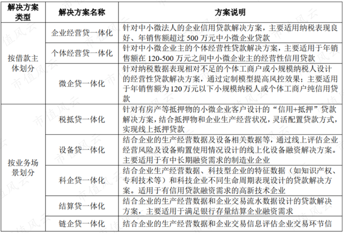 第三项业务信用科技一体化就是把征信服务和风险决策结合起来,特色在于针对不同小微企业的定制化信贷解决方案。
