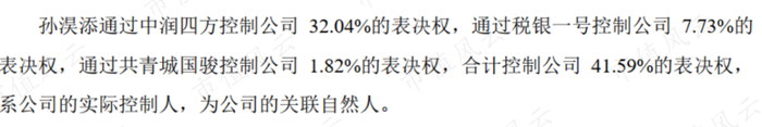首先是实控人。公司的董事孙淏(读作hào)添通过直接和间接的方式控制公司41.59%的表决权,是实际控制人。董事长则由赵彦晖担任。
