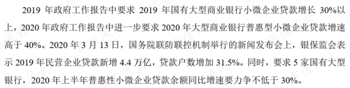 近年来,中国的小微企业贷款规模增长很快,比如说政府报告里就要求2019年国有大行小微企业贷要增长30%以上,2020年则进一步要求普惠型小微企业贷款增速高于40%。