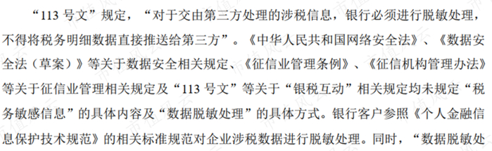 另外,113号文还规定推送给第三方的税务信息必须进行脱敏处理。