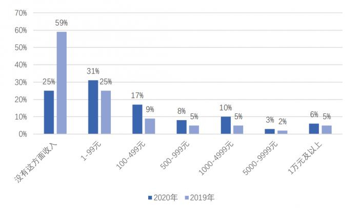 (2020年与 2019 年音乐人月收入情况对比 来源:报告)