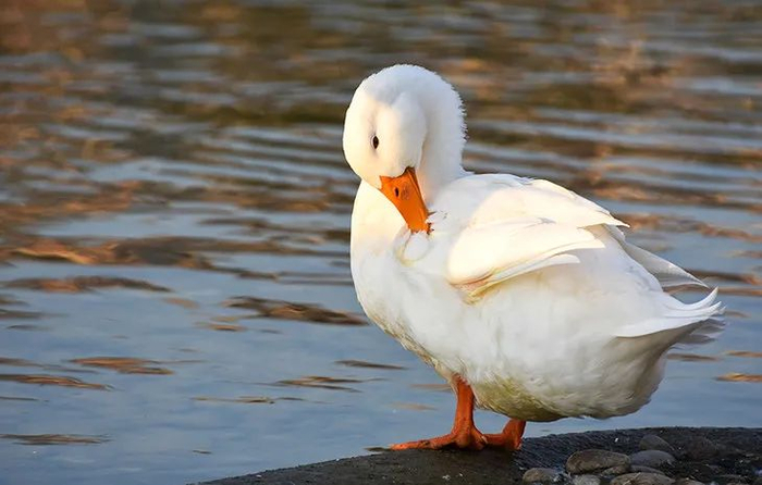 毕竟,在更为严寒的大自然,大白鸭能够常年泡在冰冷的水中,靠的就是肚皮一层特殊的羽绒。