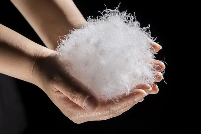 这层羽绒比棉花、羊毛的保暖性都要强;它呈特别的芦花状,密布千万个细小气孔,能随气温变化而收缩膨胀,从而进行调温。