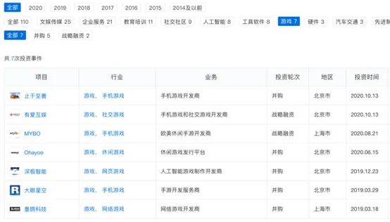 企名片Pro显示,目前字节跳动投资的游戏公司共有7家。