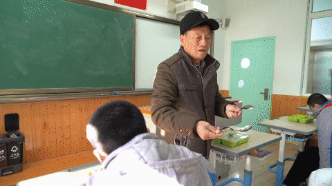 他们可能不听老师的话,却唯独听从爷爷。他们中大多数不会和人主动交流,却不吝惜一声“爷爷好”。爷爷给他们很多人喂过饭,换过尿湿的裤子。就连惠敏学校的老师、校长、家长,也都喊他爷爷。