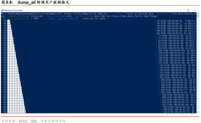 除官方数据外,Qlib支持用户提供的csv格式数据,需要调用dump_all指令将csv格式数据转换为bin和txt格式。下面笔者以港股行情数据为例,展示数据格式转换的步骤。