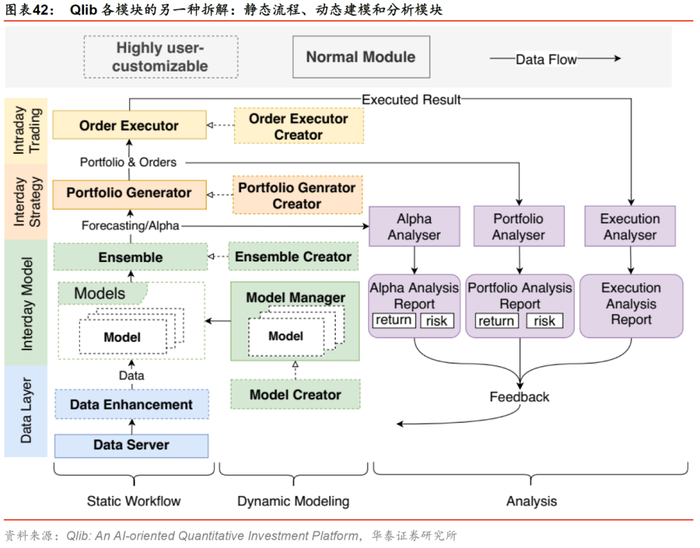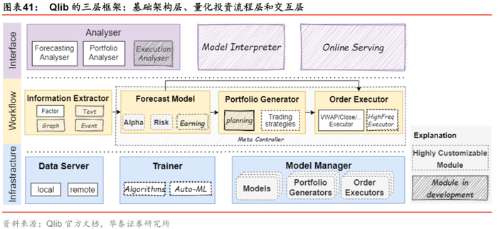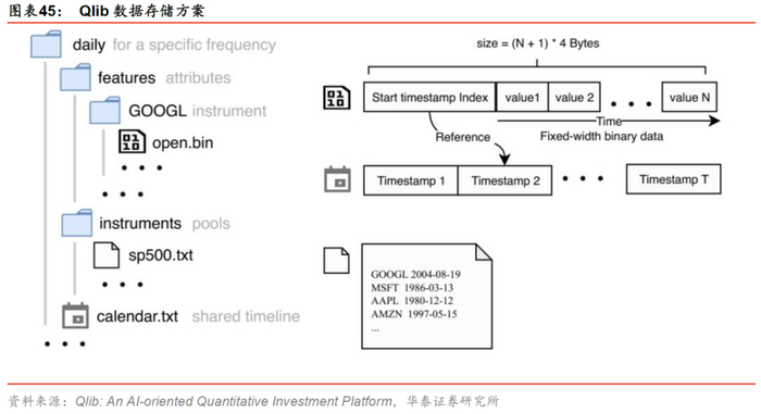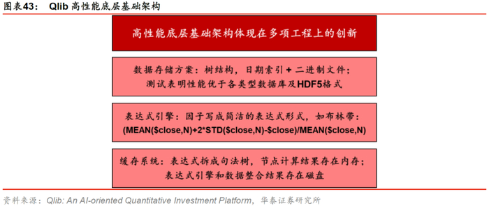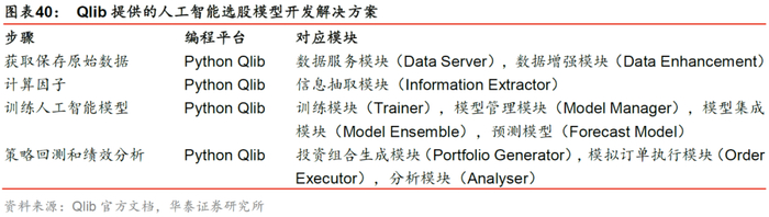 我们认为,Qlib的主要优势在于:1)覆盖量化投资全过程,用户无需切换工具包或编程语言,降低AI算法使用门槛;2)从工程实现角度,对因子数据储存、因子计算等环节提出创新解决方案,提升运算性能和开发效率,或能解决量化投资研究中的部分痛点。