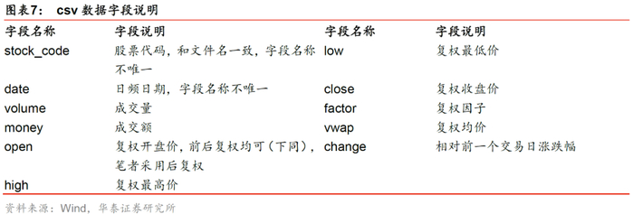 股票csv数据需要至少包含下表所示字段。其中有两个“坑”需要注意: