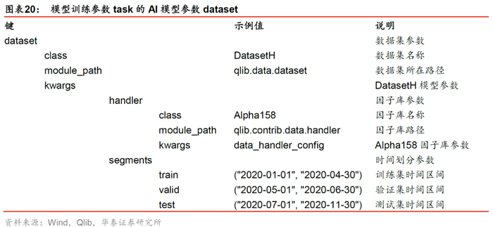 接下来定义因子生成参数data_handler_config和模型训练参数task。因子生成参数前文已作介绍,不再赘述。模型训练参数task为字典类型,较复杂,也是整个模型的核心部分,又可以分为model和dataset两个字典。
