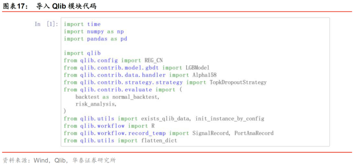 下面进入核心的选股策略构建部分,这一部分同样参考Qlib范例workflow_by_code_py,将范例代码中的A股策略改为港股策略。首先,导入后续将会调用的相关Qlib模块,如下图所示。