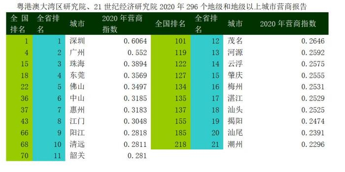 原标题:广东城市营商环境排名:深圳广州位居全国前四 珠海东莞佛山中山惠州表现卓越