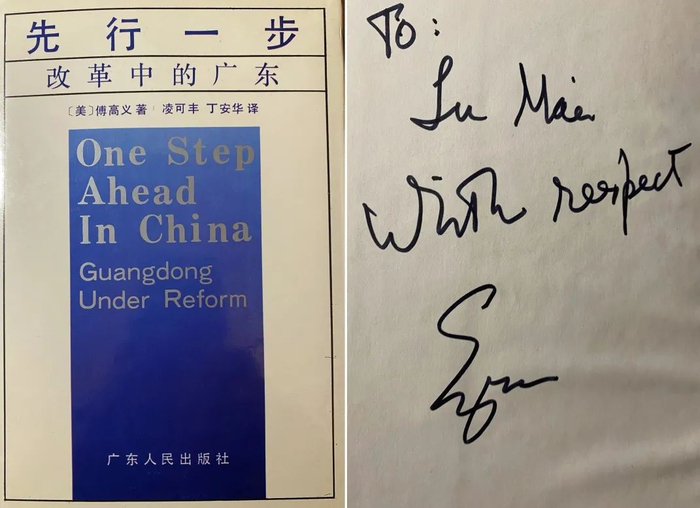 卢迈长期关注中国经济改革问题。交谈期间,傅高义在自己的著作《先行一步:改革中的广东》一书上签字并赠予卢迈。