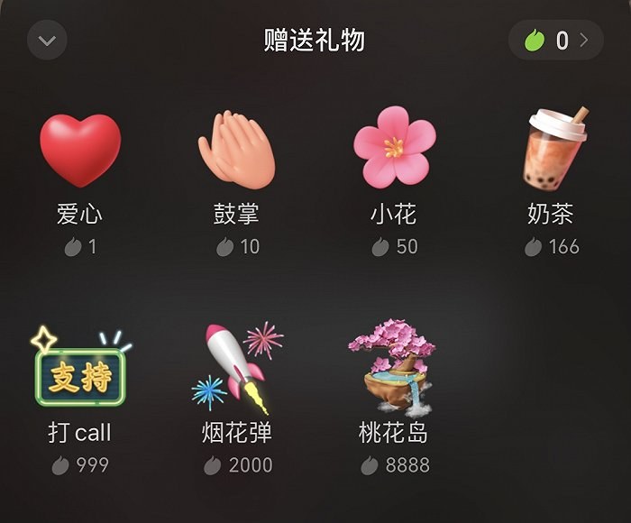 打赏时,用户需使用“微信豆”,价格方面:7个微信豆价值1元、126个18元、350个50元、896个128元、2086个298元、3626个518元。iOS端充值的微信豆只能在iOS端消费,并且已购买微信豆不能退款为人民币。在个人信息页面,用户微信豆数量会被展示出来。